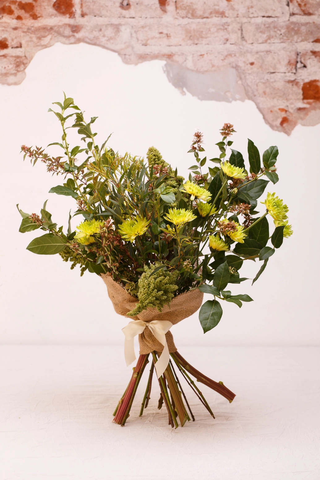 Textura y frescura botánica. Un diseño donde los distintos tonos de verde y las texturas naturales son los protagonistas. Es un arreglo desestructurado, con mucho movimiento, que se siente recién traído del bosque. Ideal para dar vida a un rincón de la casa o para regalar algo con un estilo muy natural y descontracturado.